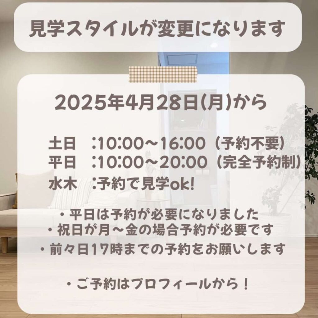 見学スタイルが変更になります 2025.10.28 イベント情報 この記事のタイトルとURLをコピーする ご予約、ご相談は予約フォームかお電話で 見学予約フォーム お電話 090-8660-1085 家づくりフェア イベントチラシDL Share RSS 2025 春 2/1~2/21 家づくりフェア開催中❣ 豪華賞品が当たる抽選券がもらえるよ♪ 前の記事 2025 春 5/10~ 知らずに失敗しない新築・リフォーム補助金セミナー開催! 次の記事
